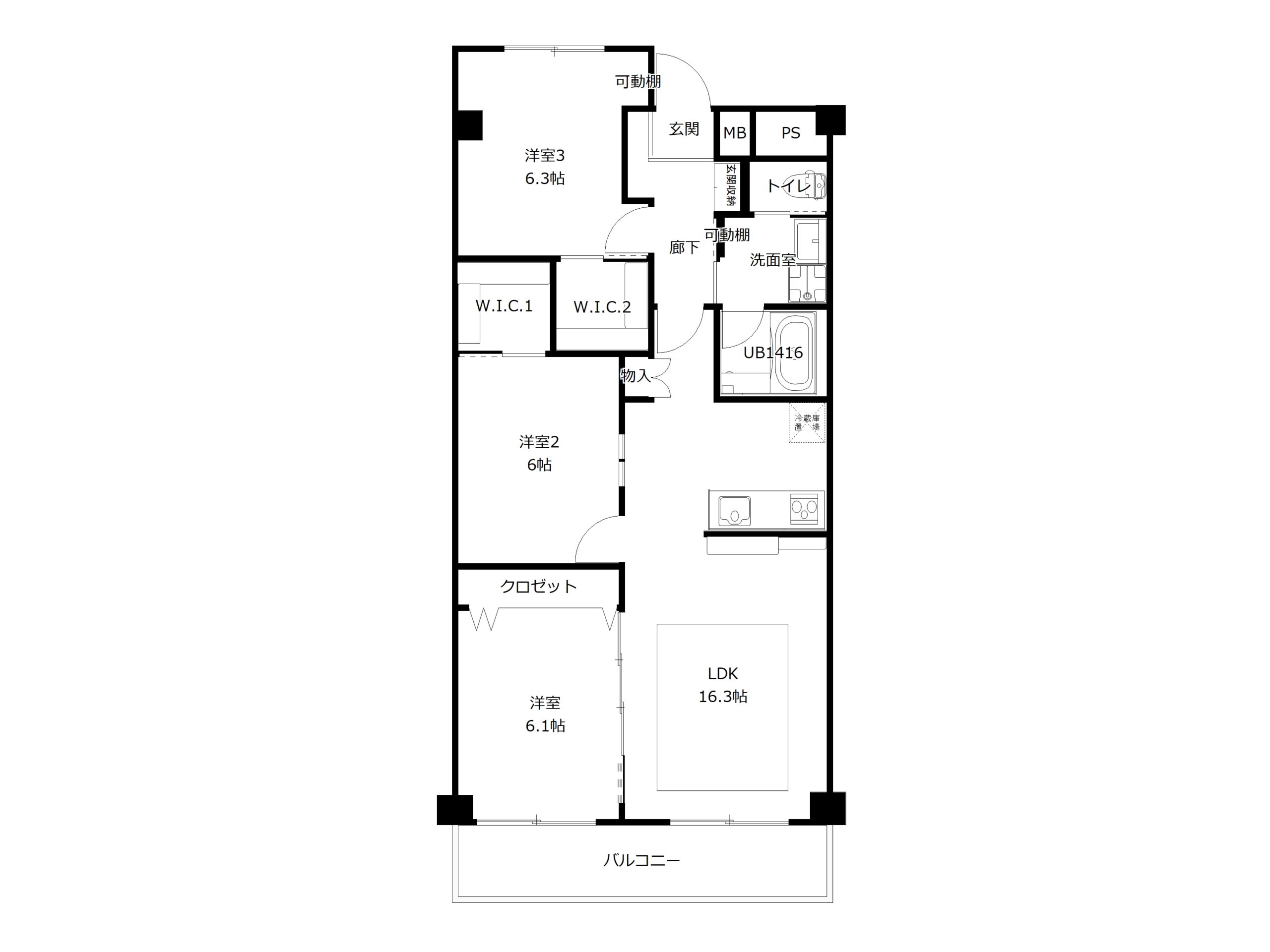 セイルコーポレーションの3つのコンセプトを徹底し、設計した物件です。 3LDKということで、ご家族が集まりやすいようリビングを16.3帖確保し、対面カウンターキッチンを設けました。 ユニットバスも1416の大きなタイプを採用し、ゆったりくつろげる「めくリノ」のコンセプトを徹底しました。 また収納も約2帖の大型ウォークインクローゼットを2箇所確保し、生活しやすい住空間を設計しました。