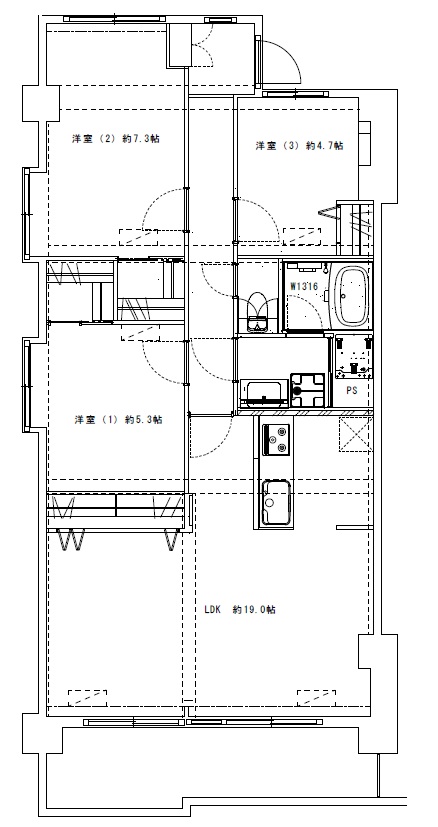 物件概要 物件名:ライフプラザ相模原 専有面積:80.01㎡ 間 取:3LDK+2WIC